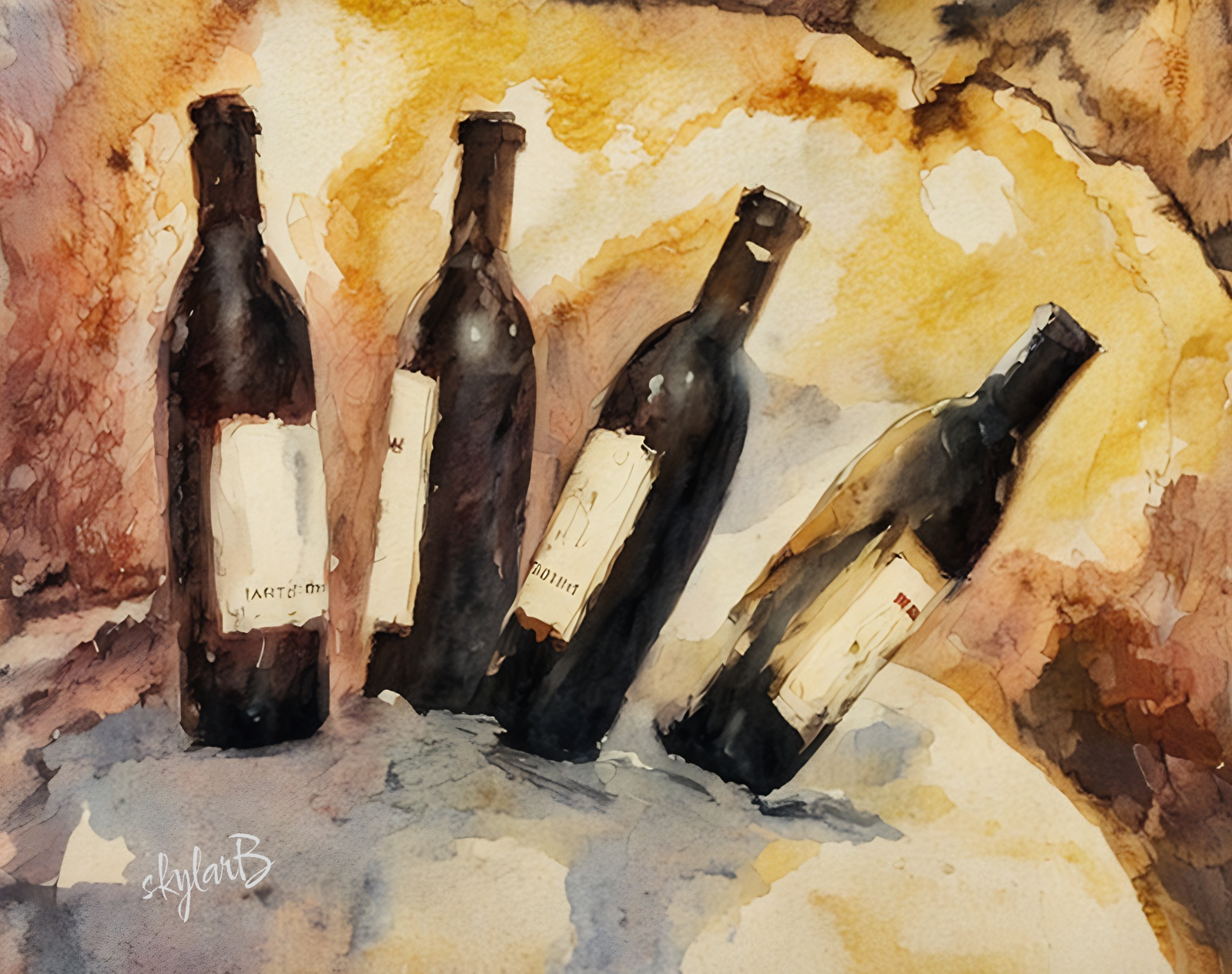 Falling Wine. One of many wine related paintings. This one sold ages ago as well. I have many wine aficionado friends. I never cared for wine much so I stood out at fancy parties and sometimes got the side-eye at fine restaurants in Italy when I asked for a Patron neat. Nevertheless, I got asked for paintings of wine. People liked this one because – OMG a wine cellar disaster!